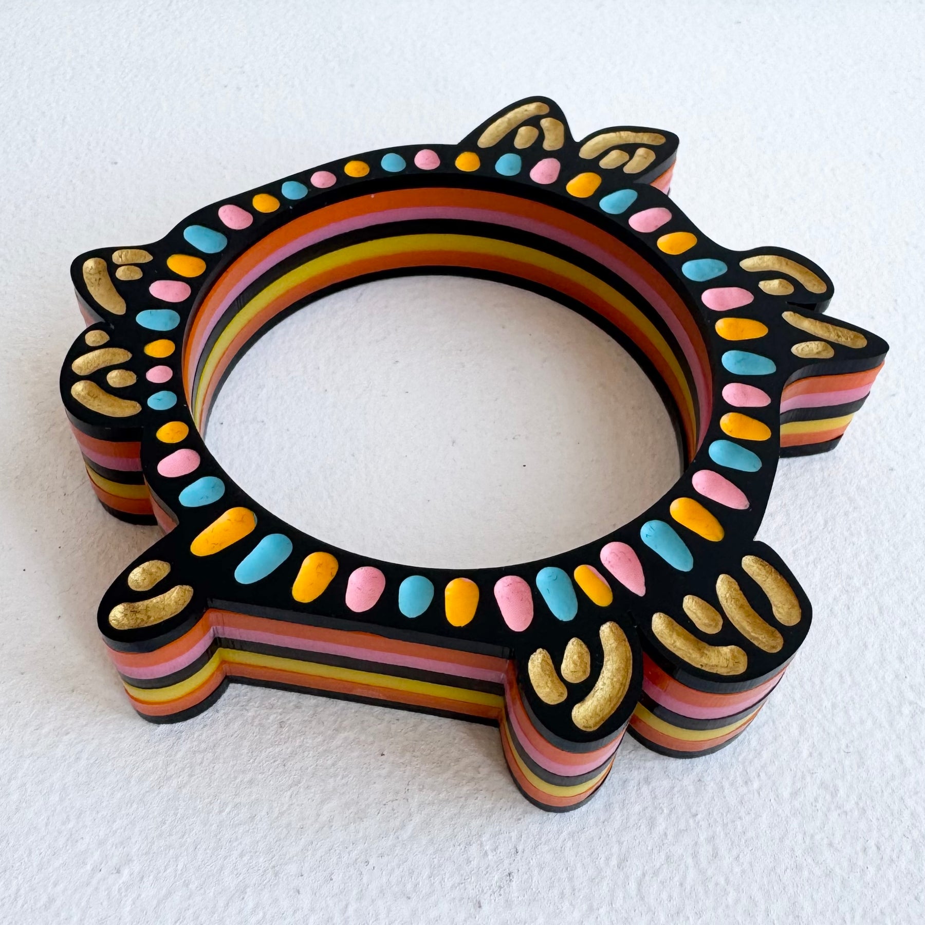 Regular price $230.00 Save $-230.00Materials: Hand etched and hand painted recycled perspex bangles.