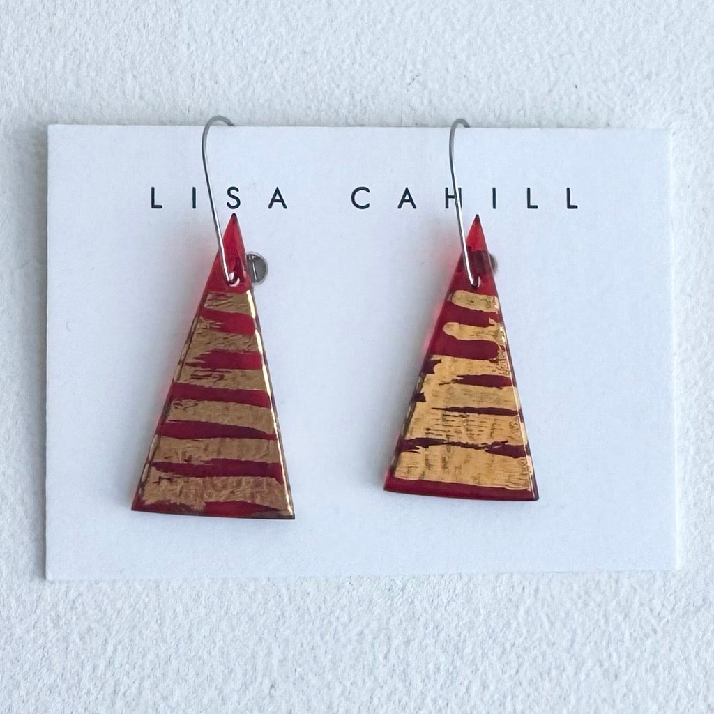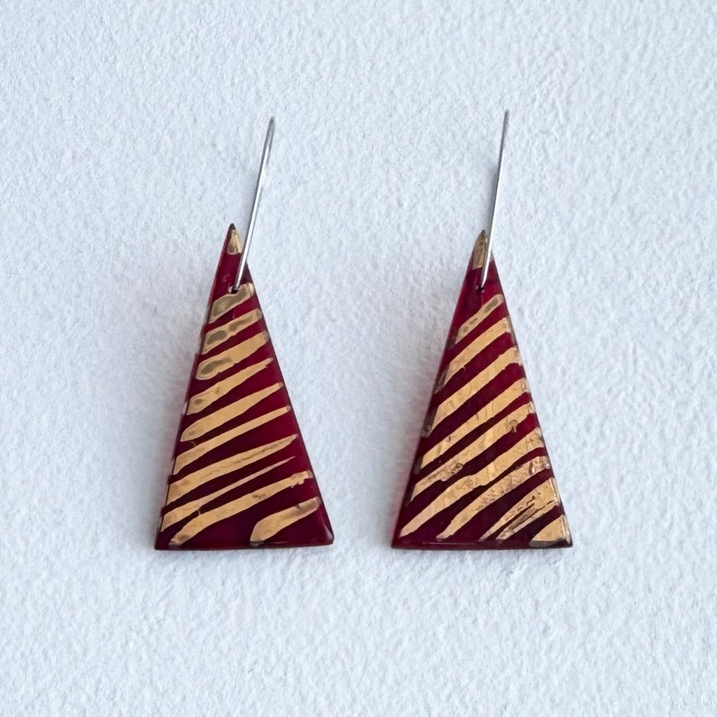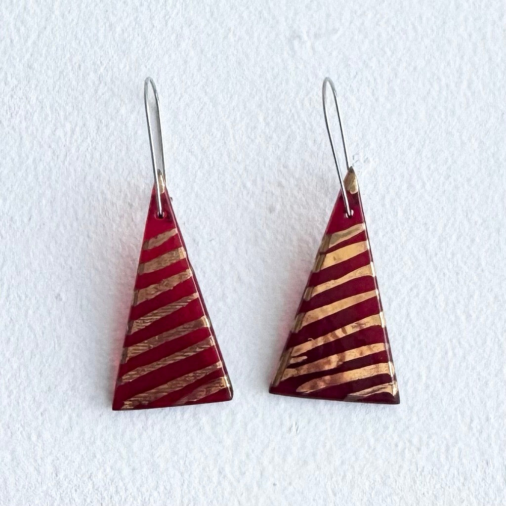 Regular price $80.00 Save $-80.00These kiln-formed and polished glass earrings are made in the artist's country studio on the outskirts of Canberra. The stainless-steel hanging wires fit neatly and clasp at the back.