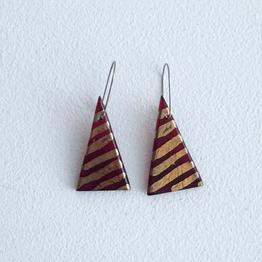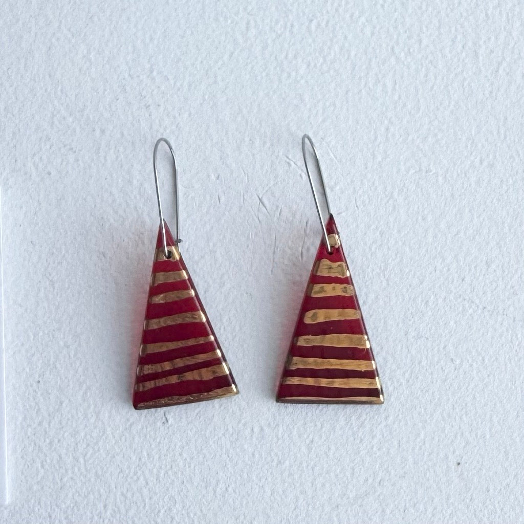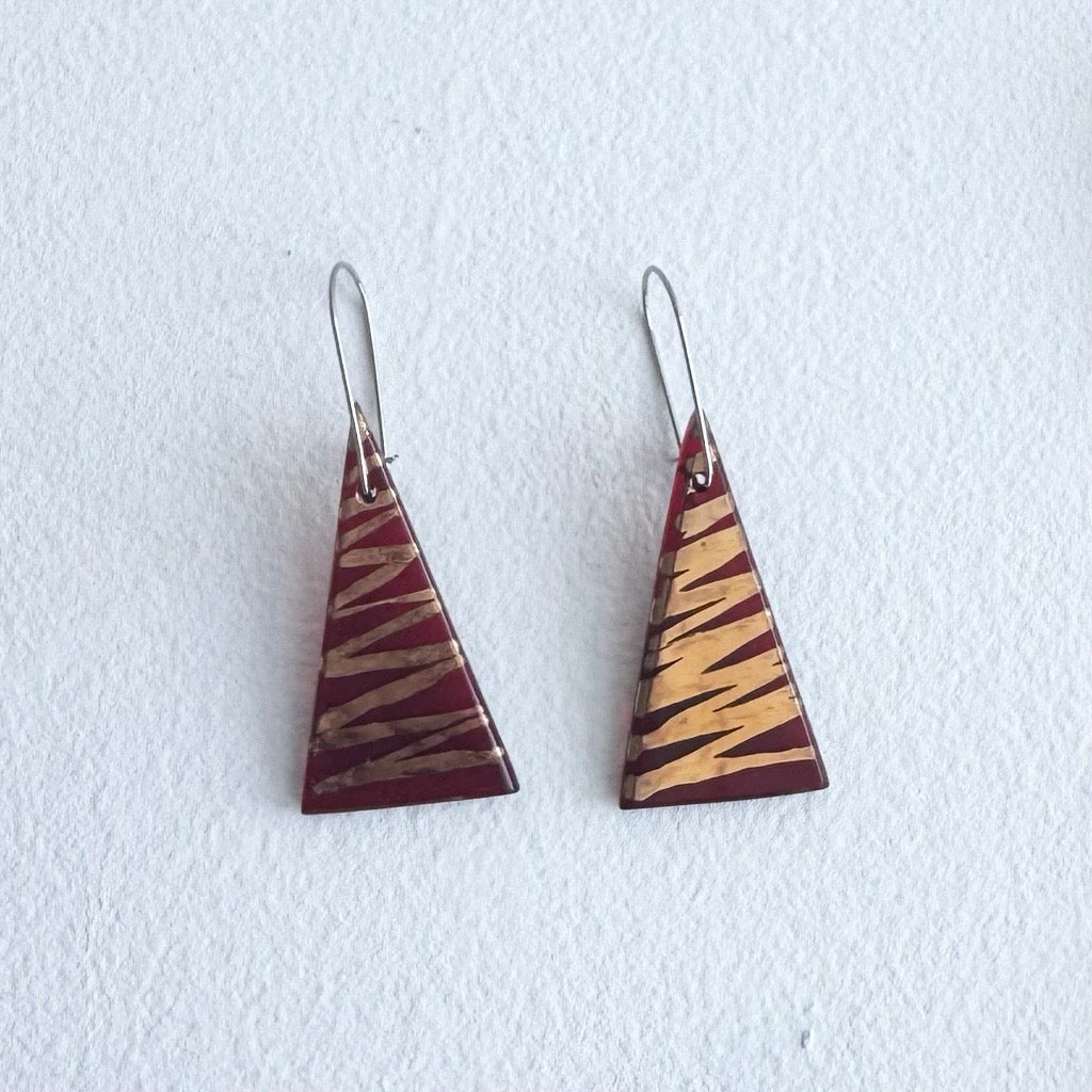 Regular price $80.00 Save $-80.00These kiln-formed and polished glass earrings are made in the artist's country studio on the outskirts of Canberra. The stainless-steel hanging wires fit neatly and clasp at the back.