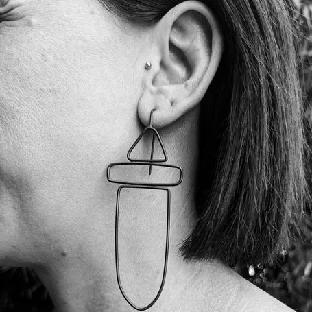 Materials: Oxidised sterling silver wire oxidised; clear rubber earring backs