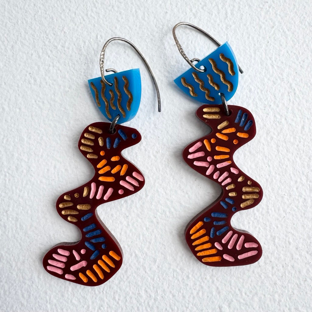 Grace Hummerston is an innovative and established jewellery designer and maker from Perth, Western Australia. Grace's work predominantly consists of super bright, translucent and high key acrylic shapes which she designs and laser cuts, hand etches and paints.